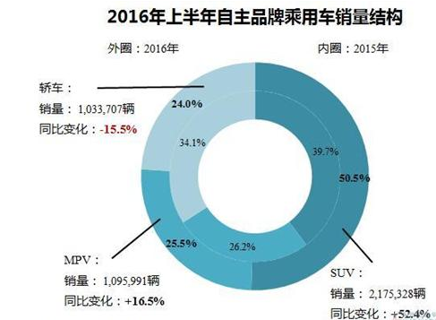 2016年上半年自主乘用車銷量分析:SUV拉動(dòng)增長...