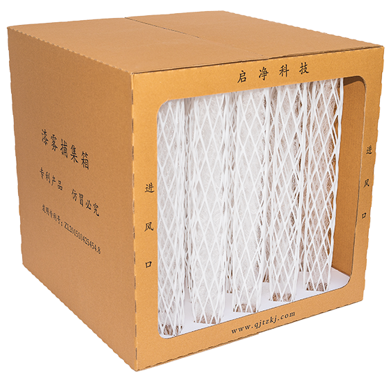 空氣及其攜帶的漆霧在空氣導(dǎo)流通道的引導(dǎo)下進(jìn)入漆霧捕集箱,空氣經(jīng)過(guò)漆霧捕集箱的過(guò)程中,漆霧被漆霧捕集箱捕集,潔凈的空氣由漆霧捕集箱的出口排出,進(jìn)而進(jìn)入循環(huán)風(fēng)空調(diào)或廢氣處理裝置。