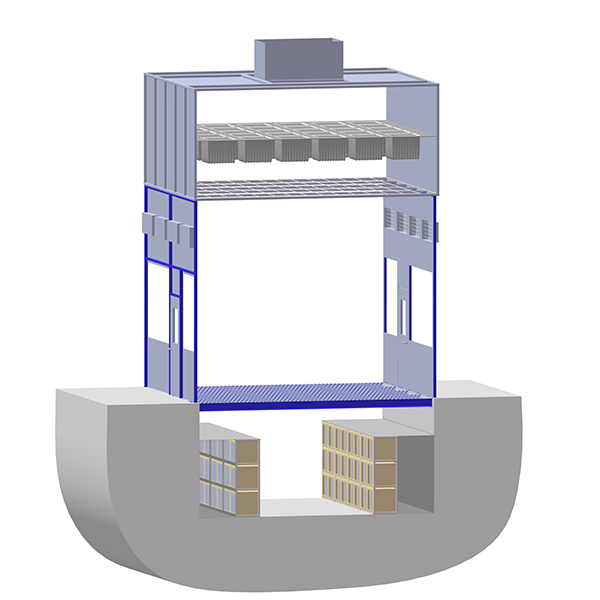 格柵板平臺(tái)位于0m平臺(tái),漆霧捕集室位于地平面以下,適用于噴涂重型工件的噴漆室。